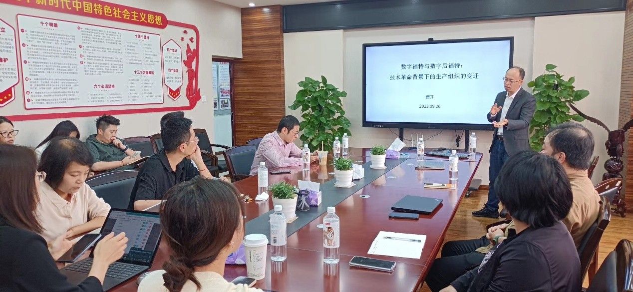 2023年9月26日下午2点,国家治理“镜湖”论道第14期学术沙龙在雷竞技raybet官网01212会议室隆重举行。本期活动邀请到清华大学博士、富布莱特学者,电子科技大学雷竞技raybet官网版下载贾开副教授,以“数字福特与数字后福特:技术革命背景下的生产组织的变迁”为主题,展开学术分享。雷竞技raybet官网版下载彭川宇、王路昊、刘鑫、代佳欣、颜学勇、王浩宇、赵放、周贤永、徐换歌、张敖、申瑢老师,以及多位同学参与会议,王思琦老师担任本次讲座主持人。