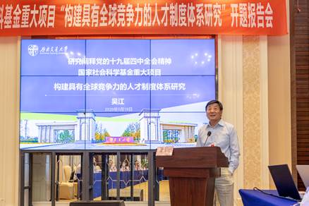 5月19日,由雷竞技raybet官网版下载公共管理与政法学院特聘教授吴江担任首席专家的研究阐释党的十九届四中全会精神国家社科基金重大项目“构建具有全球竞争力的人才制度体系研究”在成都金韵酒店凡尔赛厅顺利开题。雷竞技raybet官网版下载党委副书记桂富强应邀参会并致欢迎词,四川省社科联党组副书记/副主席罗仲平、四川省社科联规划评奖办主任黄兵列席了会议。此外,课题指导专家、课题组成员等共计30余人参加了本次会议。