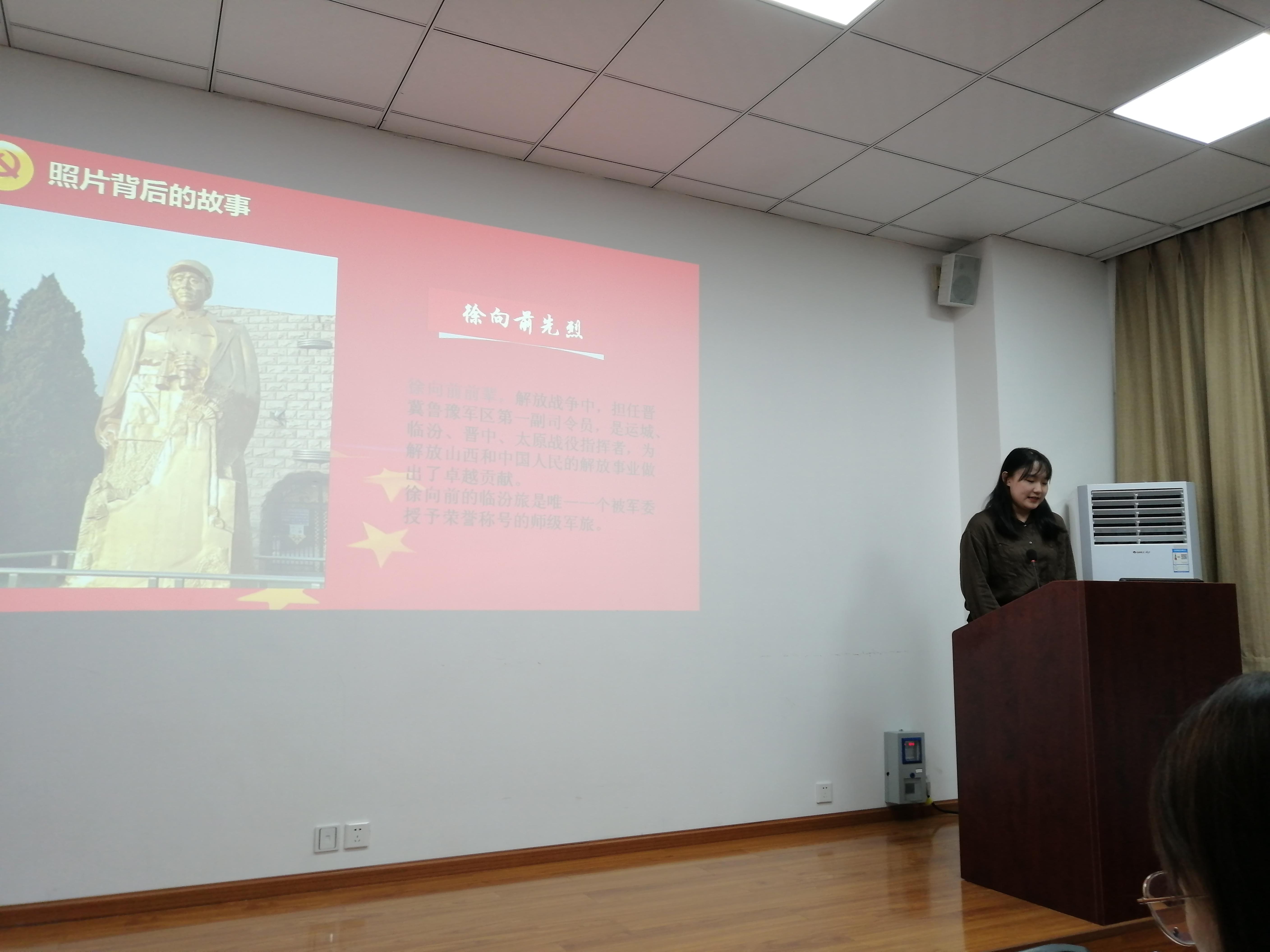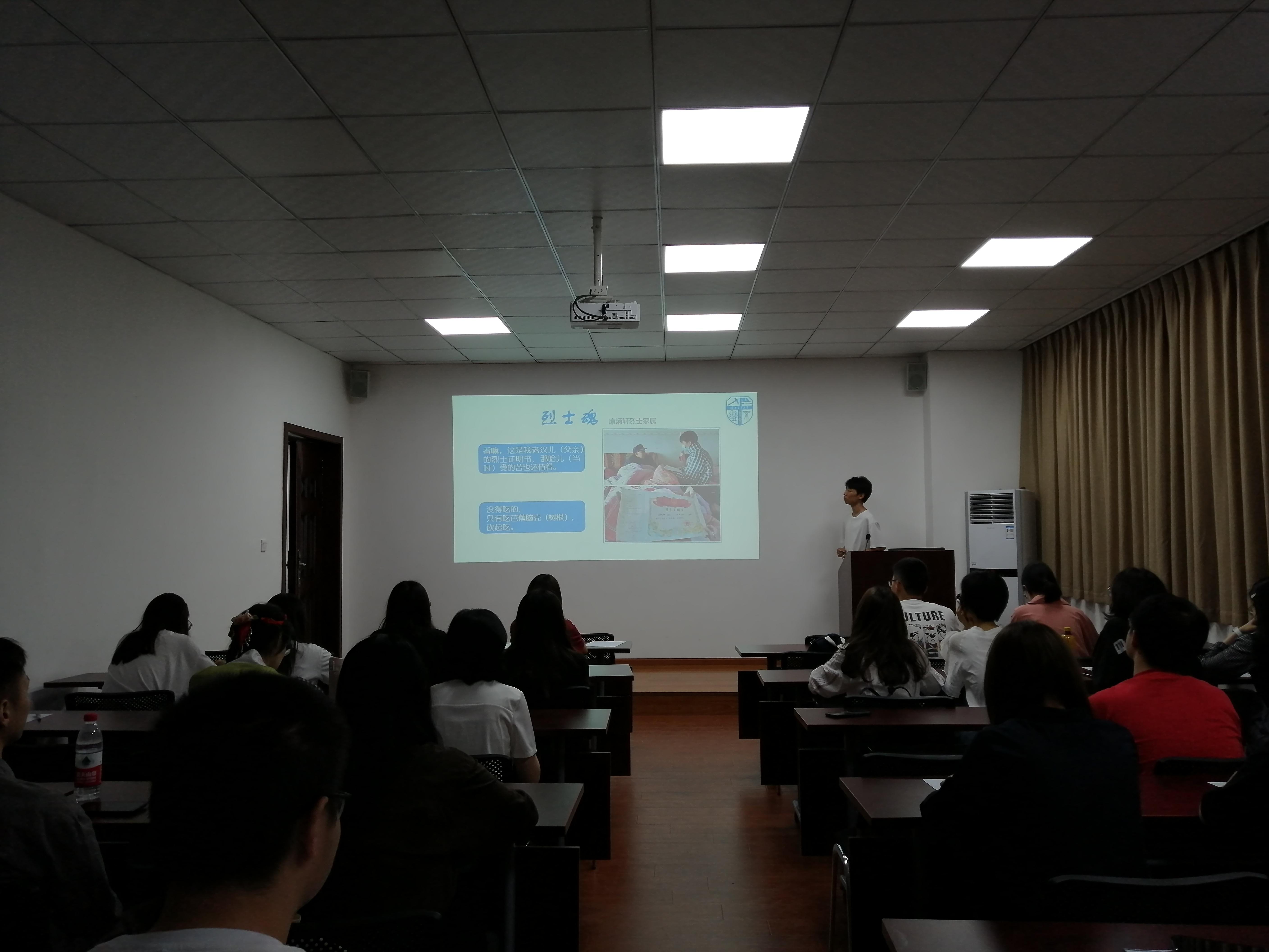 第一位分享者是黄凯同学,分别采访了两位革命烈士,感慨战争年代的不易,深刻且有意义。黄彦植同学分享了自己2008年在北京天安门的照片,结合北京奥运会回忆了当时的趣事,稚嫩却也富有情怀;霍雨薇同学分享的是山西省临汾战役纪念馆的照片,带着我们一起回忆了那段战争岁月,并介绍了革命先烈徐向前的一生,最后以祝愿党和祖国繁荣昌盛结尾。高嘉豪同学分享了在建川博物馆所拍的照片,回忆了战争年代的四川解放历程,向在场听众讲述了成都革命往事。