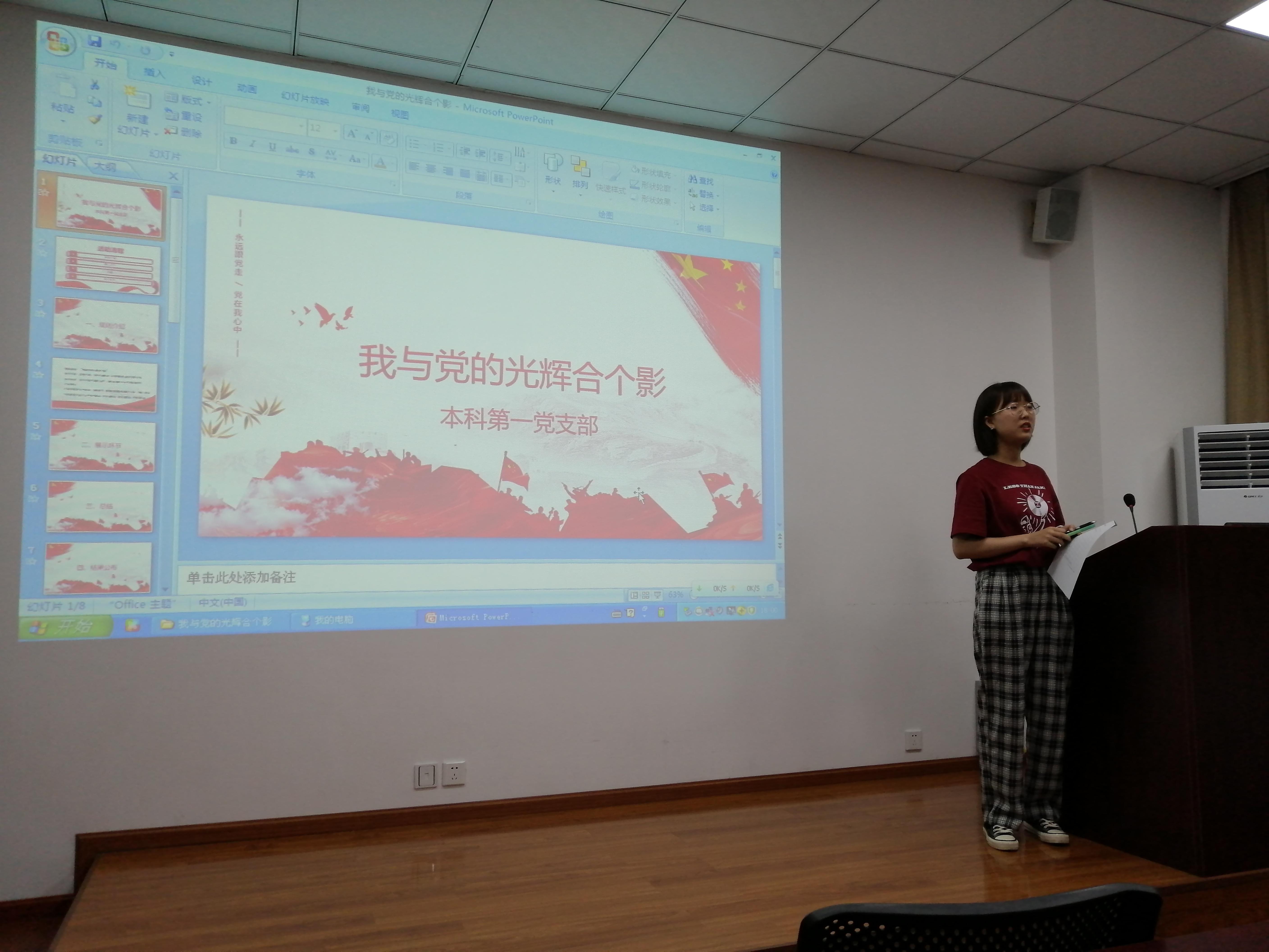 2021年5月20日晚,雷竞技raybet官网版下载本科第一党支部在0号教学楼01103顺利开展“我与党的光辉合个影”主题党日活动,本次活动由支部书记刘燕同志主持,本次活动共有10名党员同学进行分享和讲述,10名入选的党员同志通过PPT或现场图片讲述的形式分享照片背后的故事以及对中国共产党建党100周年的美好祝福。