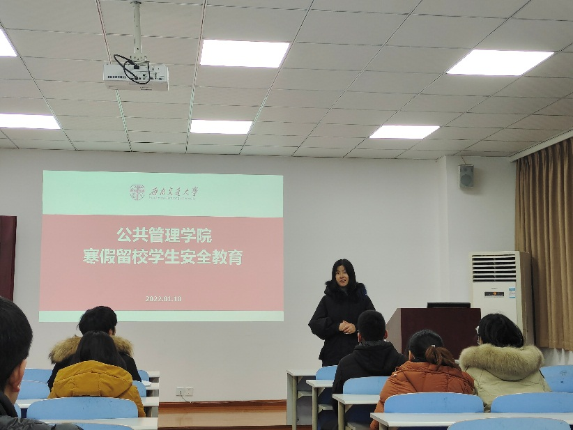 此外,学院还将建立假期留校学生管理群,寒假留校期间学生每天出行需进行报备,余老师以详细的案例向大家说明此项工作的重要性,提醒大家要紧绷安全这根弦,确保大家出行安全。